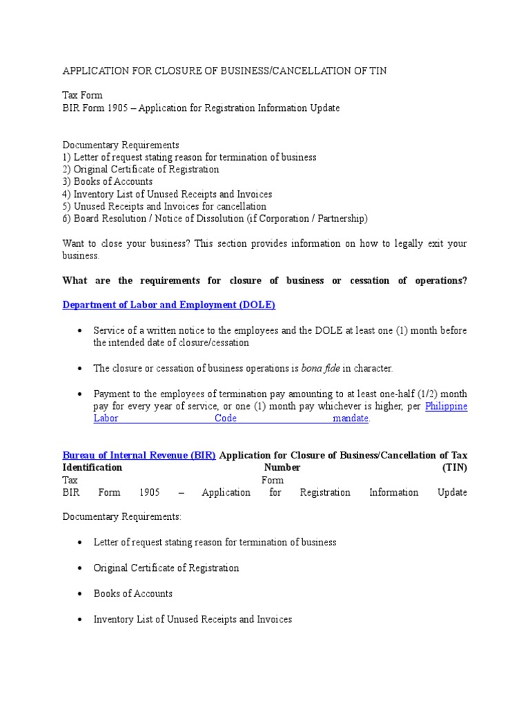 When you're writing a business letter or email, it's important to close your letter in a professional manner. Some sample business closure letters are also given below that will help you in writing your letter. Bir form 2303 or certificate of registration. The date your business will close. Variations of the earnestly closing that are satisfactory are truthfully yours, yours earnestly as well as very sincerely yours.